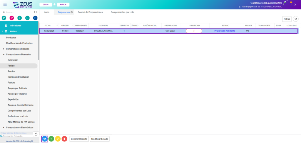 Una vez creada la preparación, su estado pasará a ser «Preparación pendiente».