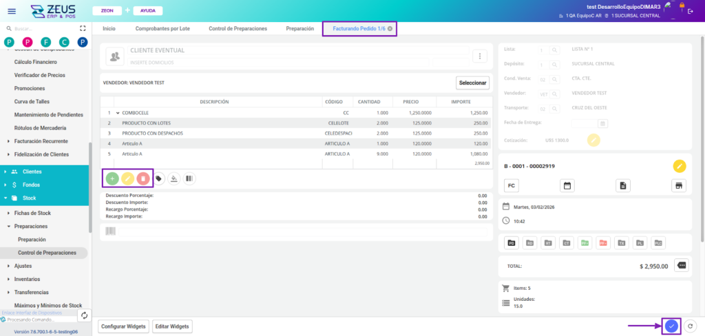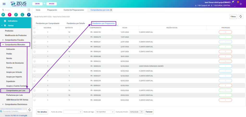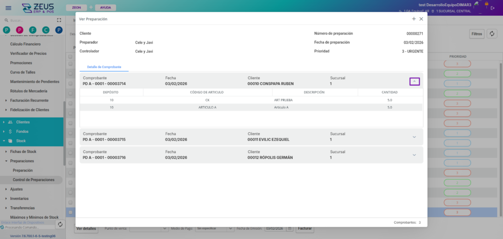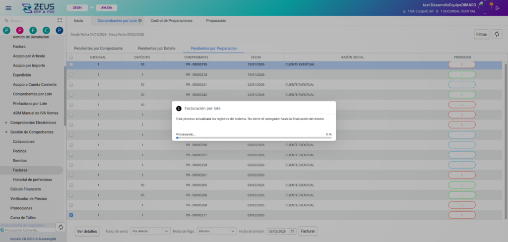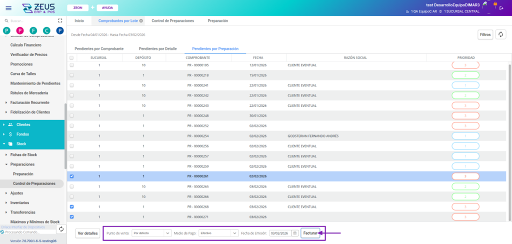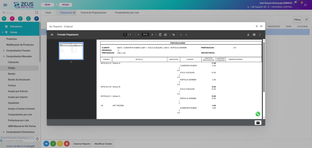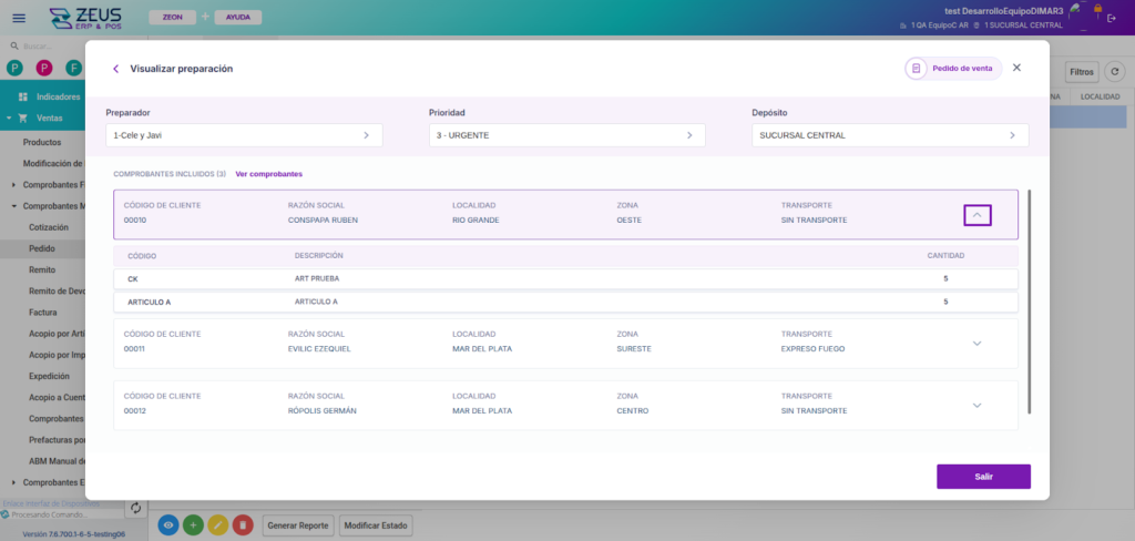 En ZEUS ERP & POS, puedes preparar y controlar pedidos de múltiples clientes dentro de una misma preparación, optimizando los procesos del depósito, agilizando el picking y permitiendo la facturación masiva con control individual por cliente.