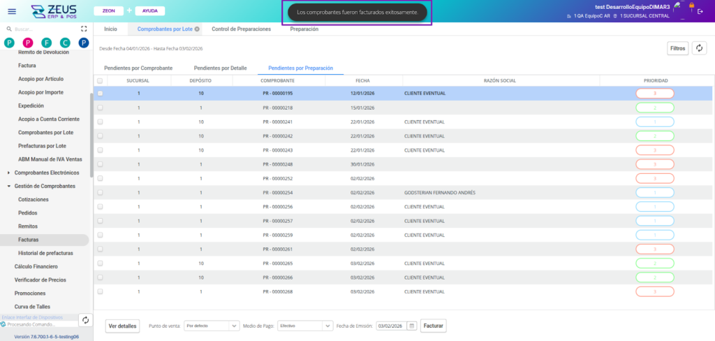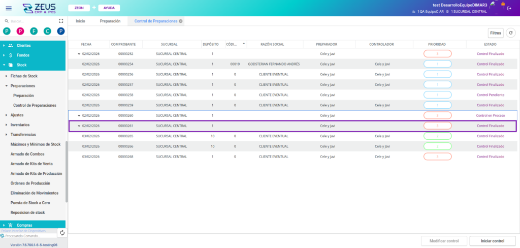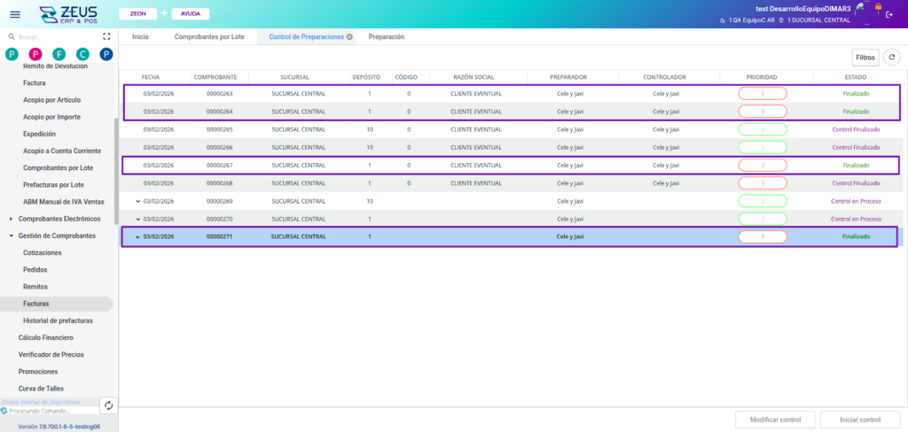 Cuando todos los clientes de la preparación estén en “Control finalizado”, la cabecera también cambiará a ese estado. De esta manera ya se puede realizar una facturación masiva desde “Comprobantes por lote”.