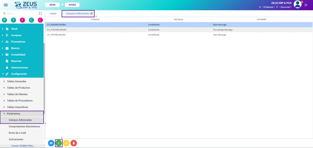Ingrese en el Módulo Configuración > Parámetros > Campos Adicionales